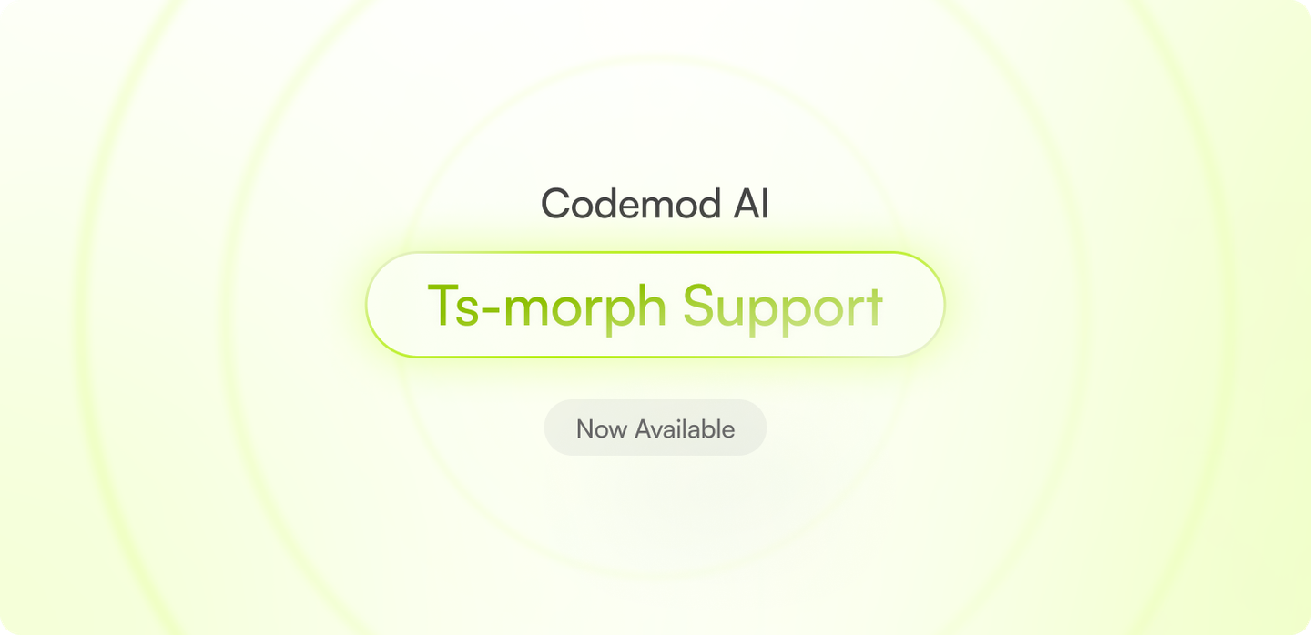 We are excited to announce that we've added support for the ts-morph engine to Codemod AI, building on the foundation laid out in our previous blog post, where we introduced our iterative approach to codemod generation. ts-morph is a powerful TypeScript manipulation library for programmatic code changes. This expansion empowers developers to tackle codebase modernization challenges using ts-morph alongside jscodeshift.